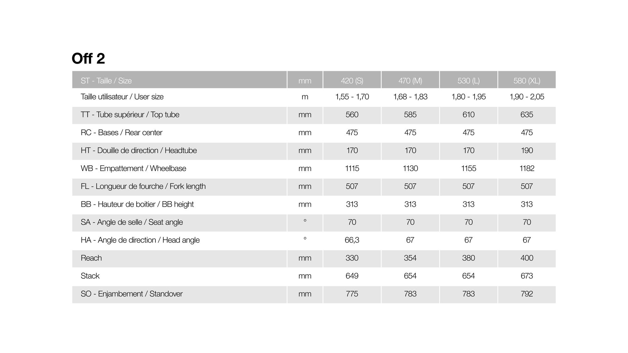 Off 2 low step-over, 6061 T4-T6 alloy, triple cavity hydroformed and extruded tubes of variable thickness for optimal stiffness, Exclusive integration for the Bosch PowerTube (vertical) battery, internal cable routing